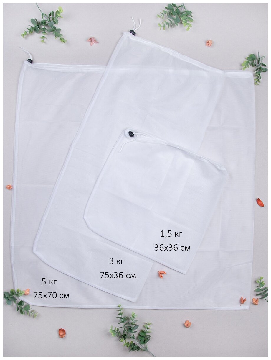 Комплект мешков для стирки одежды. Подходит для стирки бюстгальтеров, нижнего белья, футболок, рубашек, сорочек, детской одежды. Состав: Мешок 35х19 см — 1 штука. Мешок 22х25 — 2 штуки. Безопасно для вещей и стиральной машины! Мешок для стирки обеспечивает защиту вещей от деформации, повреждений и зацепок других вещей и растягивания. Кроме того, сетка для стирки защищает барабан от попадания в него мелких элементов одежды: бисер, стразы, нашивки и пр.