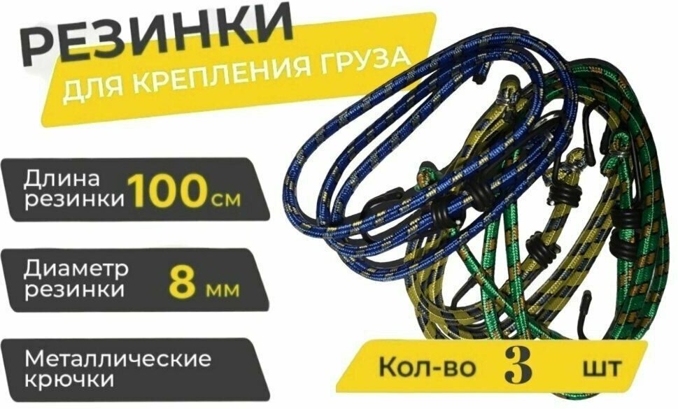 Багажные резинки длиной используются для перевозки грузов. С их помощью можно закреплять различные предметы в прицепе или багажнике на крыше легковой автомашины. Жгуты обладают высокой эластичностью и прочностью. Будут полезны автовладельцам. Резинки обеспечивают надежную фиксацию груза во время движения автомобиля. Крюки изготовлены из стали, поэтому они крепко удерживают натянутые резинки.