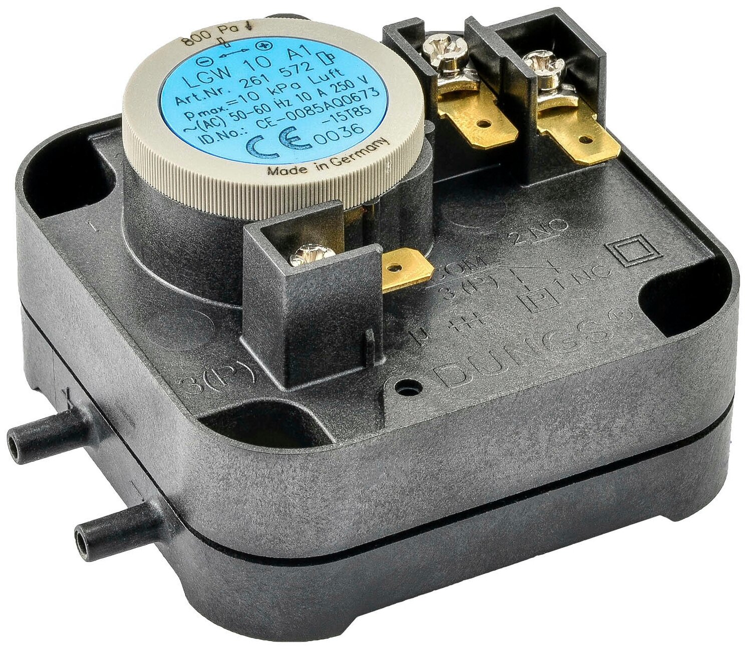 Дифференциальный датчик-реле DUNGS LGW Применяется для контроля давления разряжения, разницы давлений и избыточного давления газа и воздуха. При увеличении или уменьшении величины разницы давления за границу допустимого значения, контакт замыкается и подается сигнал на управляющее устройство. Регулировка осуществляется с помощью винта. - Пластмассовый корпус, IP20 - Высокая чувствительность мембраны - Простой монтаж - Небольшие габаритные размеры - Соединение для подачи давления: Шланговый штуцер диаметром