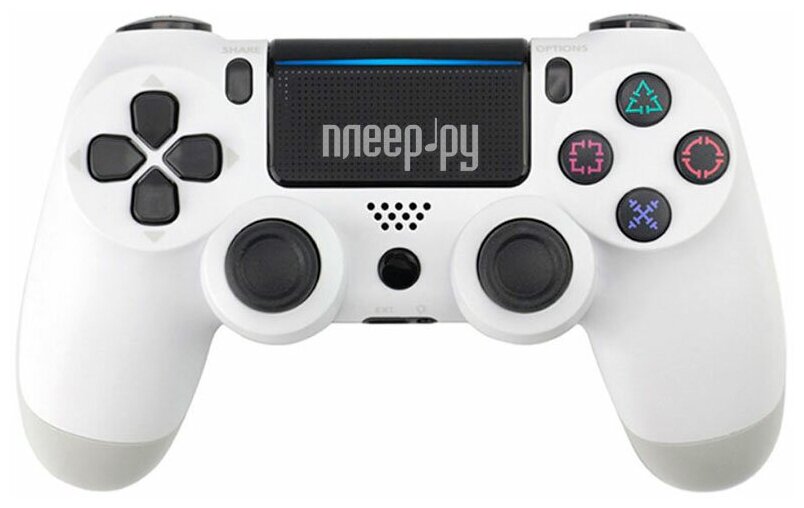 Беспроводной Bluetooth (Блютуз) геймпад черный для игровой консоли PS 4, создан с учётом потребностей геймера и обеспечивает полный контроль над игровым процессом. Функционал: - Вибрация; - Динамик; - Разъем для стереогарнитуры/наушников; - Датчики движения; - Парные аналоговые джойстики Комплектация - Геймпад - Зарядный кабель – 80 см; - Встроенный аккумулятор 600 мАч - Упаковка – блистер.
