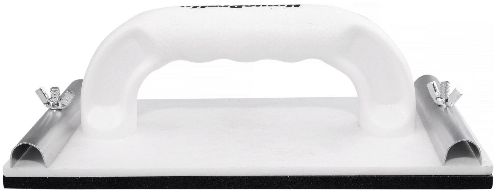 Держатель для шлифленты — инструмент, используемый при проведении отделочных работ. Применяется в домашних условиях для ручной зачистки поверхностей. Корпус изготовлен из прочного ABS-пластика. Роль рукоятки играет верхняя часть в виде выступа. К колодке крепится абразивная лента или сетка для шлифования. Конструкция с удобными стальными зажимами надежно фиксирует расходный материал независимо от типа абразива. Инструмент упрощает ручную шлифовку поверхностей.
