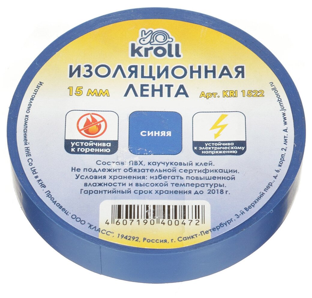 Изолента Kranz - это поливинилхлоридная пленка толщиной 0.13 мм с клеевым слоем на одной из сторон, разрезанная на полосы по 15 мм шириной. Изоляционная лента устойчива к перепадам температур от -10С до +70С. Вещества, входящие в состав изоленты и клеевого слоя, не поддерживают горение. Изолента способна растягиваться на 150%, поэтому даже большие пучки толстых проводов будут надежно скреплены.