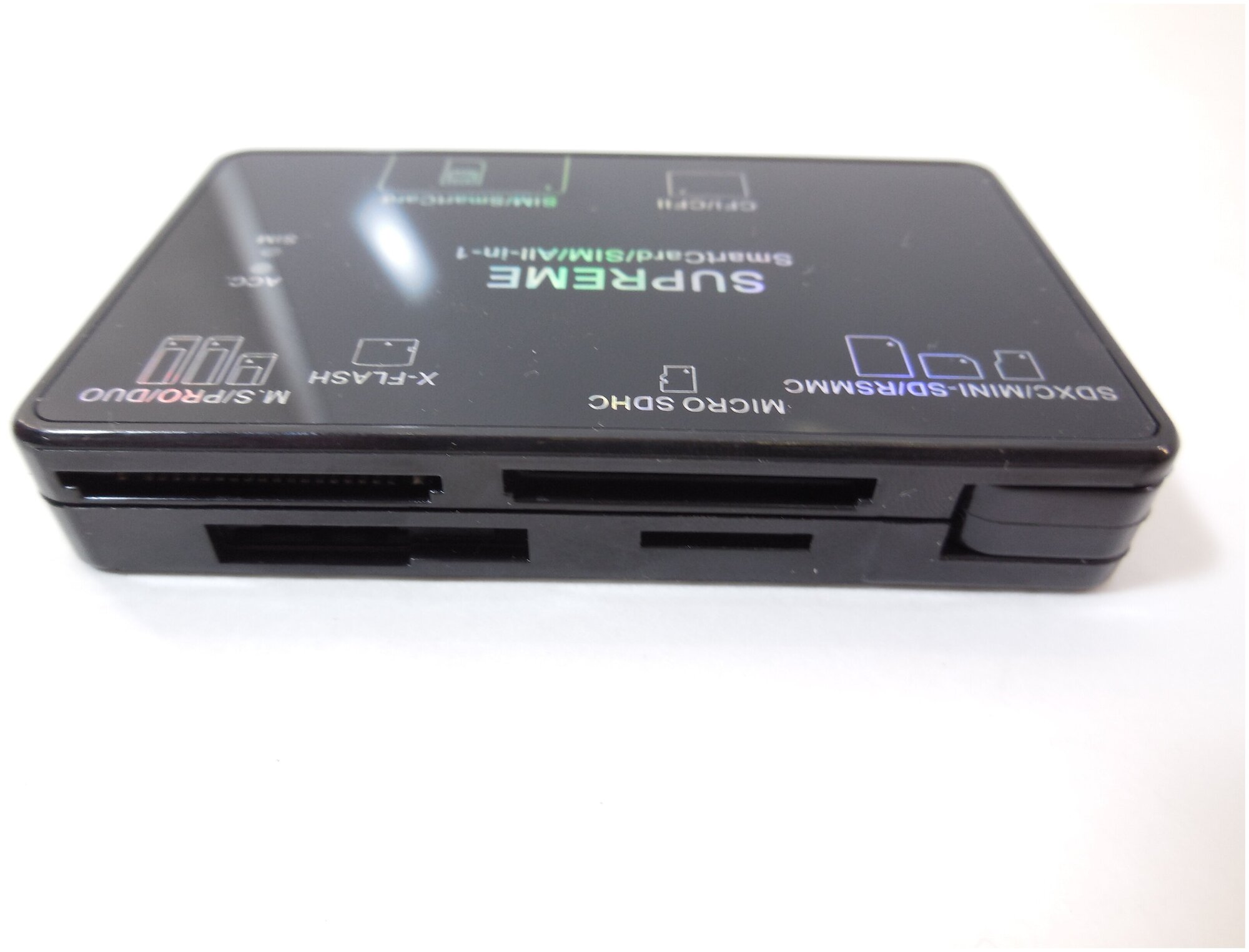 Особенности: Компактный мультиформатный картридер Поддерживаемые стандарты карт памяти: Secure Digital (SD) Series, Memory Stick (MS) Series, XD Series. Питание от USB порта Скорость передачи данных до 480 Мбит/сек Поддержка режима Plug-n-Play, не требует установки дополнительного драйвера Совместимость: SD(Secure Digital) SDHC (Secure Digital High Capacity) MMC (MultiMediaCard) MMCplus MMCmobile RS –MMC microSDHC microSD / TransFlash Memory Stick Micro (M2)