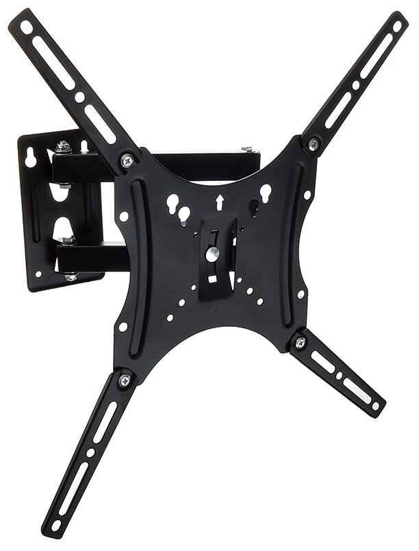 Универсальный наклонно-поворотный кронштейн 14-55 для крепления телевизоров или мониторов разных моделей и размеров. Кронштейн позволяет экономить пространство, а также надежно удерживает телевизор. Поддерживает наклон вниз 15 градусов, поворот 180 градусов. Надежные металлические шарниры защищают тяжелый телевизор от падения и позволяют фиксировать разное расстояние от стены. Кронштейн способен выдержать вес до 15 кг.