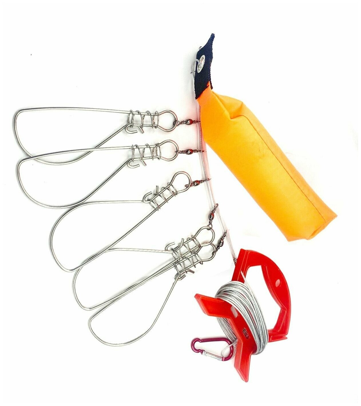 Кукан — удобное приспособление для сохранения и переноски улова. Представляет собой металлический шнур с карабинами, на которые сажают пойманную крупную рыбу, а затем опускают в воду, чтобы она дольше оставалась живой. Характеристики Размер каждого карабина: 15 × 4,5 см. Толщина проволоки: 3 мм. Длина троса: 2 м.