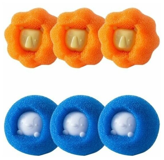 Шарик для стирки с эффектом устранения шерсти, 6 штук. Размер: 3 см. Материал: пластик, нейлон. Шарик предназначен для улучшения качества стирки в стиральной машине: придает мягкость белью, предотвращает образование катышков, защищает ткань от образования разводов от стирального порошка, экономит расход воды и средств для стирки. Специальная характеристика: удаляет с одежды шерсть животных, волосы и пр, не позволяя им спутаться и забиваться в слив стиральной машины.