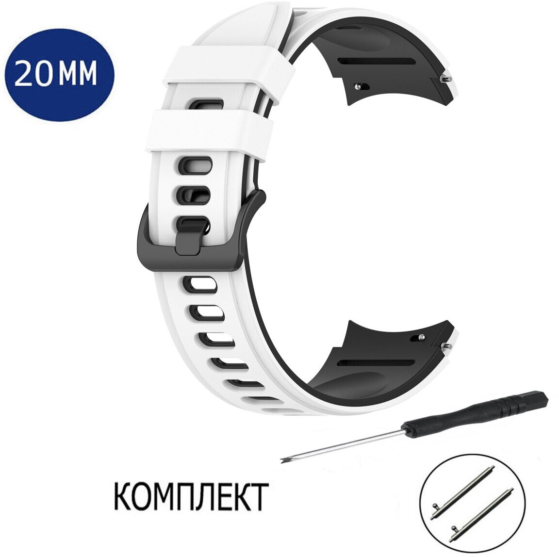 . Экологически чистый силиконовый материал, устойчивый к износу . Эргономичный браслет, мягкий и удобный в носке . Многоцветный вариант, отвечающий различным стилевым требованиям . Классическая металлическая пряжка для удобства ношения / снятия . Конструкция с несколькими отверстиями для легкой регулировки размера . Идеальная замена вашего старого, сломанного ремешка Спецификация: . Материал: Silicone . Длина: 12,3 +10,5 см . Ширина: 20 мм . Вес: 0,013 кг Совместим с: .