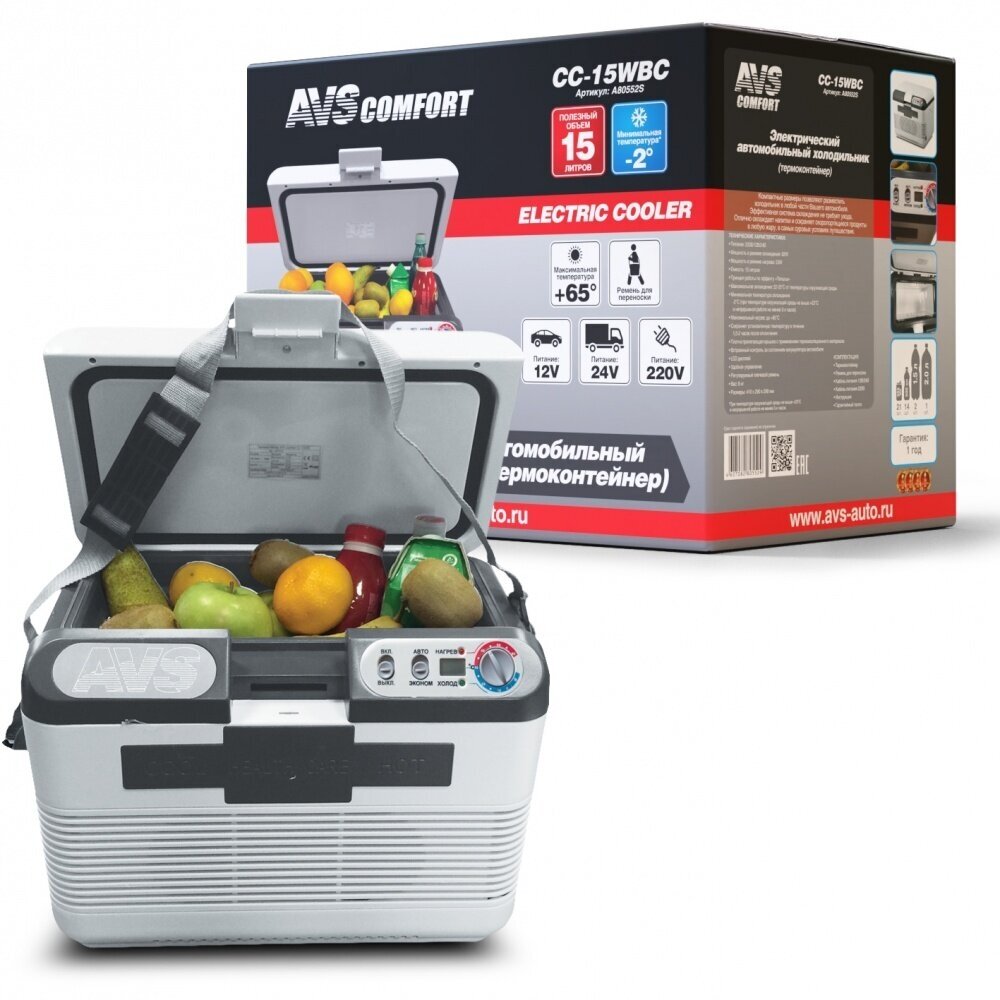 Характеристики: Питание 12В/24В (длина кабеля 170 см) Питание 220В (длина кабеля 170 см) Мощность в режиме охлаждения: 45 Вт. Мощность в режиме нагрева: 35 Вт. Объем камеры: 15 л. Размер упаковки (ДхШхВ): 470х320х380 мм. Внешний размер (ДхШхВ) без упаковки: 420х290х340 мм. Размер холодильной камеры (ДхШхВ): 340*160*160 мм. Вес холодильника без упаковки 5,5 кг. Максимальное охлаждение: 15-25 С от температуры окружающей среды.