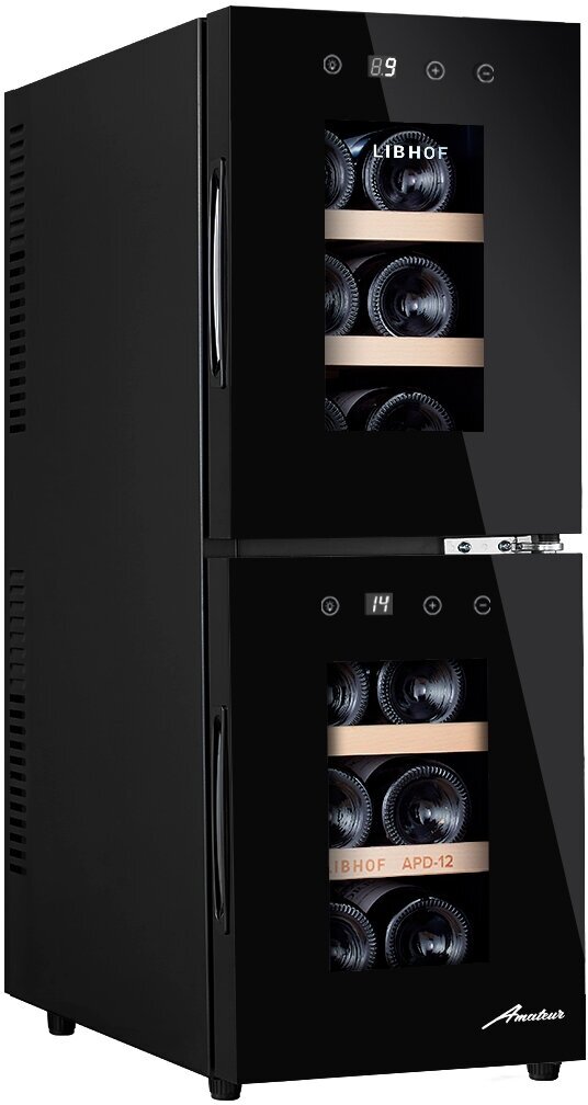 Компрессорный винный шкаф Libhof серии Sommelier с двумя температурными зонами идеально подходит для длительного профессионального хранения вина и работает в диапазоне от 5 до 20 C. Благодаря современному компрессору внутри винного шкафа поддерживается стабильная температура, затрачивается небольшое количество электроэнергии и обеспечивается низкий уровень шума. Система вентиляции поддерживает равномерное распределение холодного воздуха внутри шкафа.