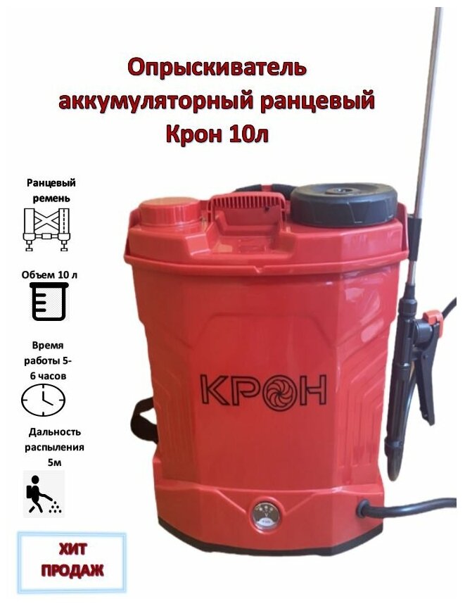 тип питания: аккумуляторный, мощность: 12 кВт, номинальный объем бака для распыления: 10 л, способ транспортировки: ранцевый Дон-Тех АО-10 – аккумуляторный опрыскиватель для фермерских, парковых или садово-огородных хозяйств. Пригодится для опрыскивания деревьев водой, удобрениями, пестицидами. Объём бака – 10 литров. Особенности модели: Максимальный расход жидкости – 3,6 л/мин. При полной заправке и при максимальном давлении, вещества в баке хватит на 4,5 минуты опрыскивания. Максимальное давление – 4 бара. Оно настраивается с помощью кругового регулятора и позволяет управлять дальностью разбрызгивания (0,5-2 м).