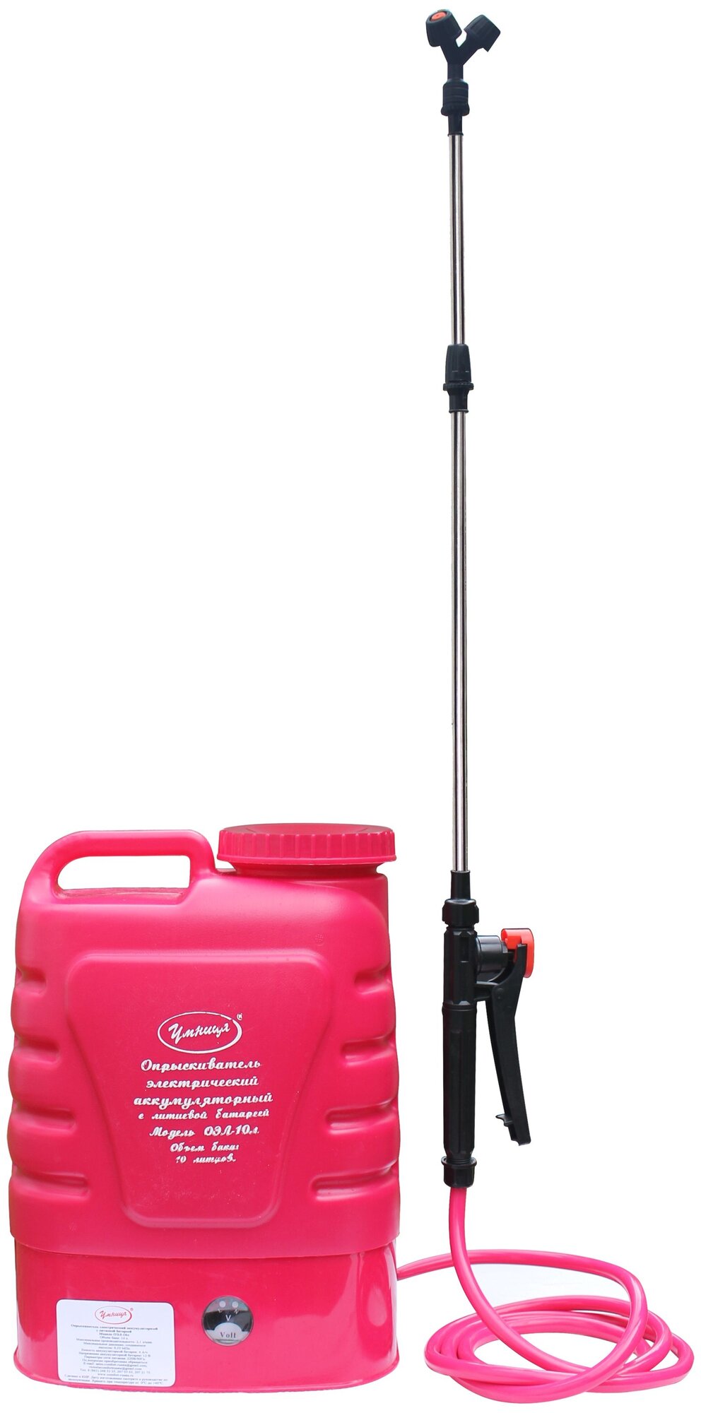Аккумуляторный электрический опрыскиватель Умница ОЭЛ-12 предназначен для химической защиты растений от вредителей и болезней, борьбы с сорной растительностью, распыления воды, удобрений, гербицидов, пестицидов, противоэпидемической обработки скота и т. д. Также они могут использоваться для дезинфекции, дезинсекции, мытья окон, стен, машин. Комплектация: Опрыскиватель в сборе - 1 шт; Бак электрического опрыскивателя в сборе - 1 шт; Телескопическая удочка из нержавеющей стали - 1 шт; Ремни для переноски