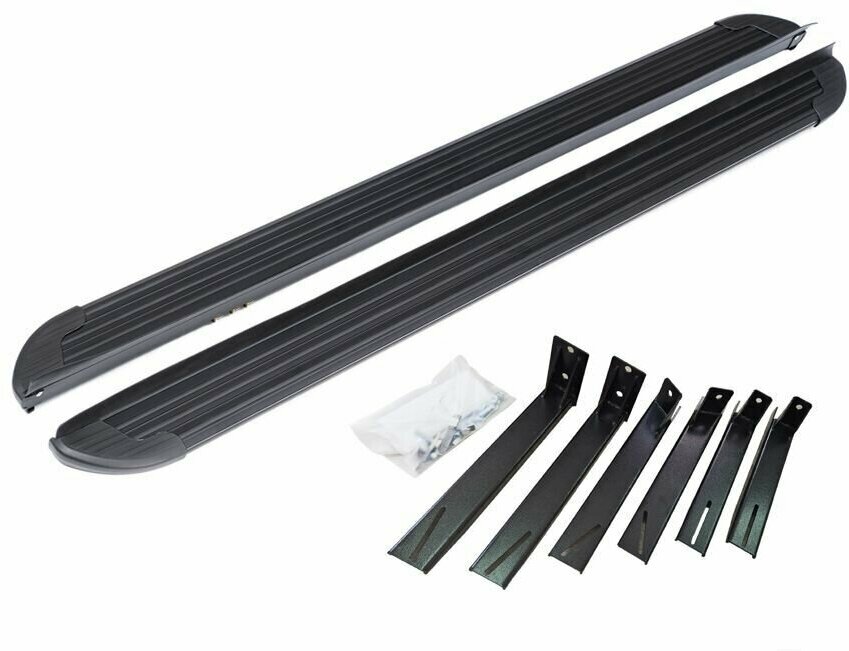 Пороги Rival Premium-Black выполнены из следующих материалов: Профиль - Алюминий; Кант - Алюминий; Площадка - Резина; Боковые накладки - Полипропилен Надежные пороги Rival обеспечивают удобство посадки в автомобиль водителю и пассажирам(в особенности детям), дополняют экстерьер автомобиля, придавая ему стильность и индивидуальность. Основное преимущество порогов Rival - наличие силовых кронштейнов, которые позволяют порогу выдерживать динамическую нагрузку до 150 кг, без повреждений конструкции.