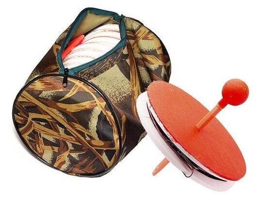 Набор жерлиц в сумке Тонар ЖЗО-04 d 185 мм, катушка d 63 мм, набор 10 шт. Жерлица - это снасть для ловли на живца. Охота на хищника зимой это увлекательное занятие для любого рыболова. Можно ловить на блесну или балансир, но рыба охотнее откликается на живую приманку. Прежде всего конструкция наших жерлиц способствует затемнению лунки площадкой-основанием, рыба спокойнее подходит не боясь яркого света. Яркая расцветка катушки и флажка помогает быстро увидеть сработку в зимних условиях.