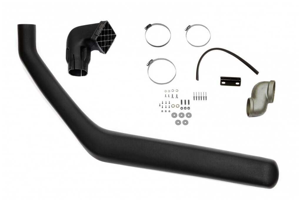 Пластиковый воздухозаброник (шноркель / snorkel) для автомобилей Исузу Джакару / Трупер / Бигхорн и Опель Монтерей (Isuzu Jackaroo / Trooper / Bighorn и Opel Monterey). Предназначен для выноса точки забора воздуха двигателем автомобиля на уровень крыши. Тем самым снижается вероятность, или полностью исключается возможность получения гидроудара вследствие наполнения цилиндров двигателя несжимаемой водой из преодолеваемого брода.
