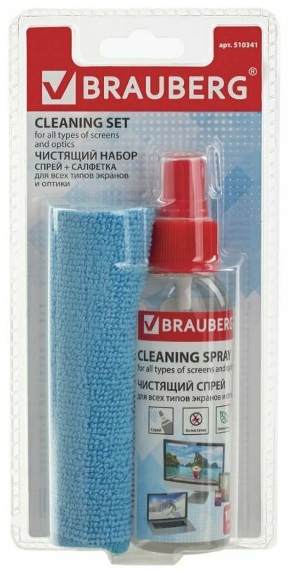 Чистящая жидкость-спрей BRAUBERG обеспечивает идеальное очищение сильно загрязненных поверхностей из стекла: компьютеров, мониторов, мобильных устройств и т. д. Подходит для протирки оптических поверхностей и линз очков. Спрей для очистки мониторов и экранов подходит и для окон и зеркал, автомобильных стекол, магазинных витрин, кафельной плитки, хрустальных, фарфоровых, фаянсовых изделий. Нетоксичен. Обладает антистатическим эффектом, позволяющим увеличить временной интервал между его использованием.