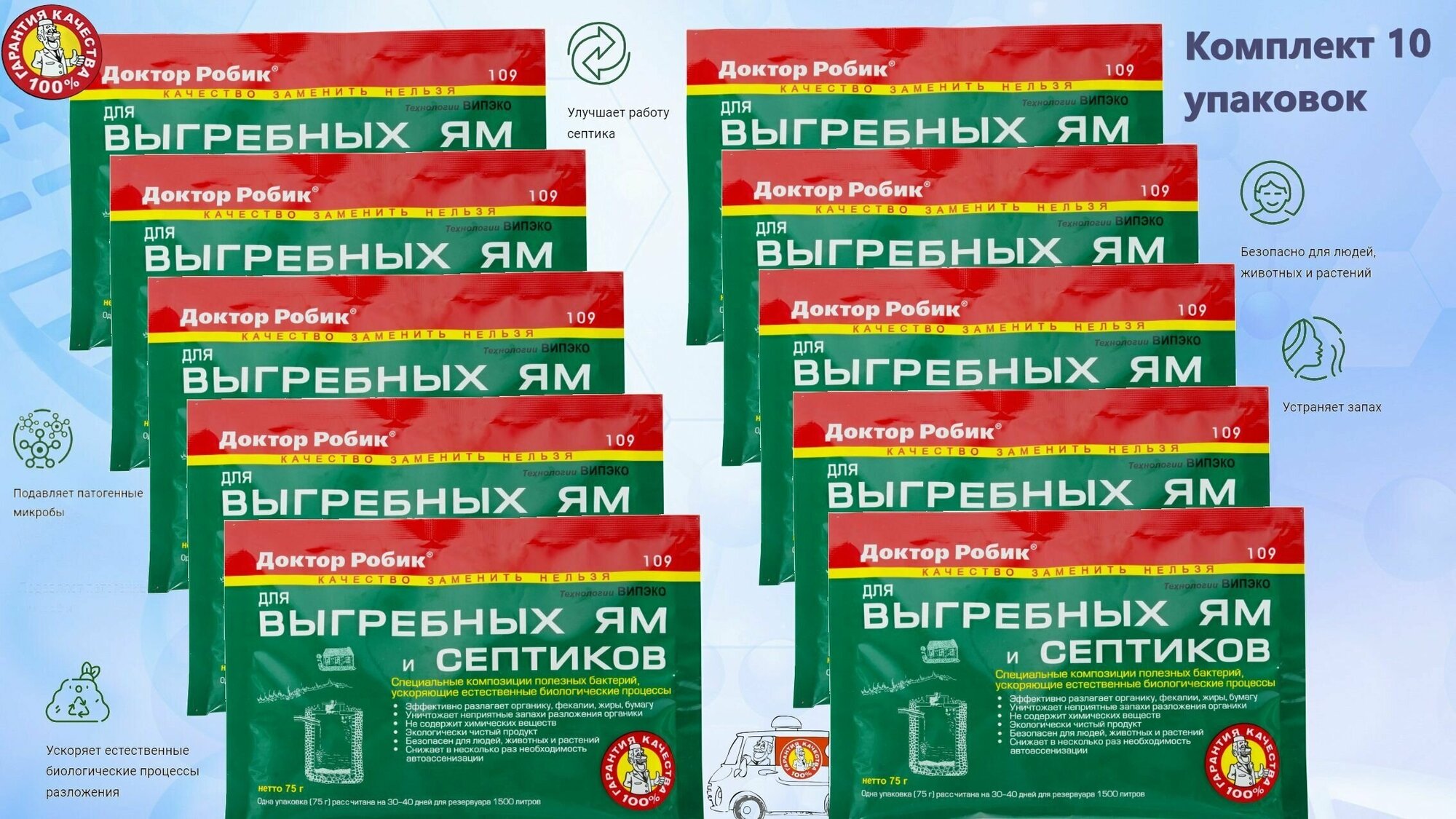 Скидка 5% на Средство Для Выгребных Ям И Септиков Доктор Робик 109, 10 Пакетиков По 75 Г