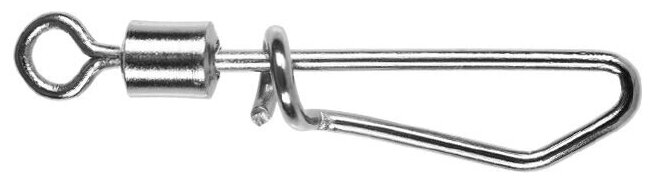 Вертлюжок с застежкой применяется для крепления различных частей оснастки и предотвращения скручивания основной лески. Застежки изготовлены пружинной стали, вертлюжки из латуни. Защитно-декоративное покрытие этих изделий - BN (черный никель). Тест в КГ, указанный на этикетке, является критической нагрузкой, при которой происходит полное разрушение изделий. Необходимо помнить, что при нагрузках, примерно на 30% меньше критических, уже начинается деформация изделия.