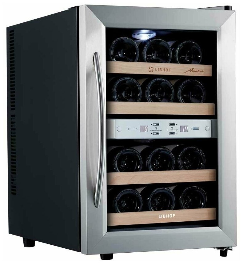 Одним из самых ярких представителей российской товарной линейки Cellar Private (Селлар Приват) является удобный шкаф для хранения вин CP012-2W. Он представляет собой невысокое изделие, разделенную на две одинаковые зоны. Внутри холодильника можно разместить до 12 бутылок вина. Дверцы холодильника выполнены из качественного стекла. Внутри поддерживается температура не ниже 7 и не выше 18 градусов по шкале Цельсия. Оптимальные условия для хранения разных вин поддерживается термоэлектрической системой.
